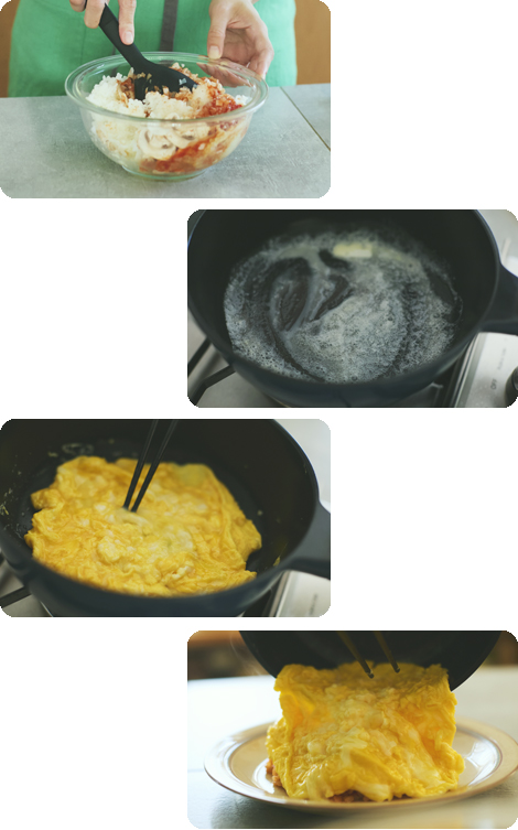 何かと失敗しがちなオムライスも、明日香さんの手にかかると簡単&きれいに完成!